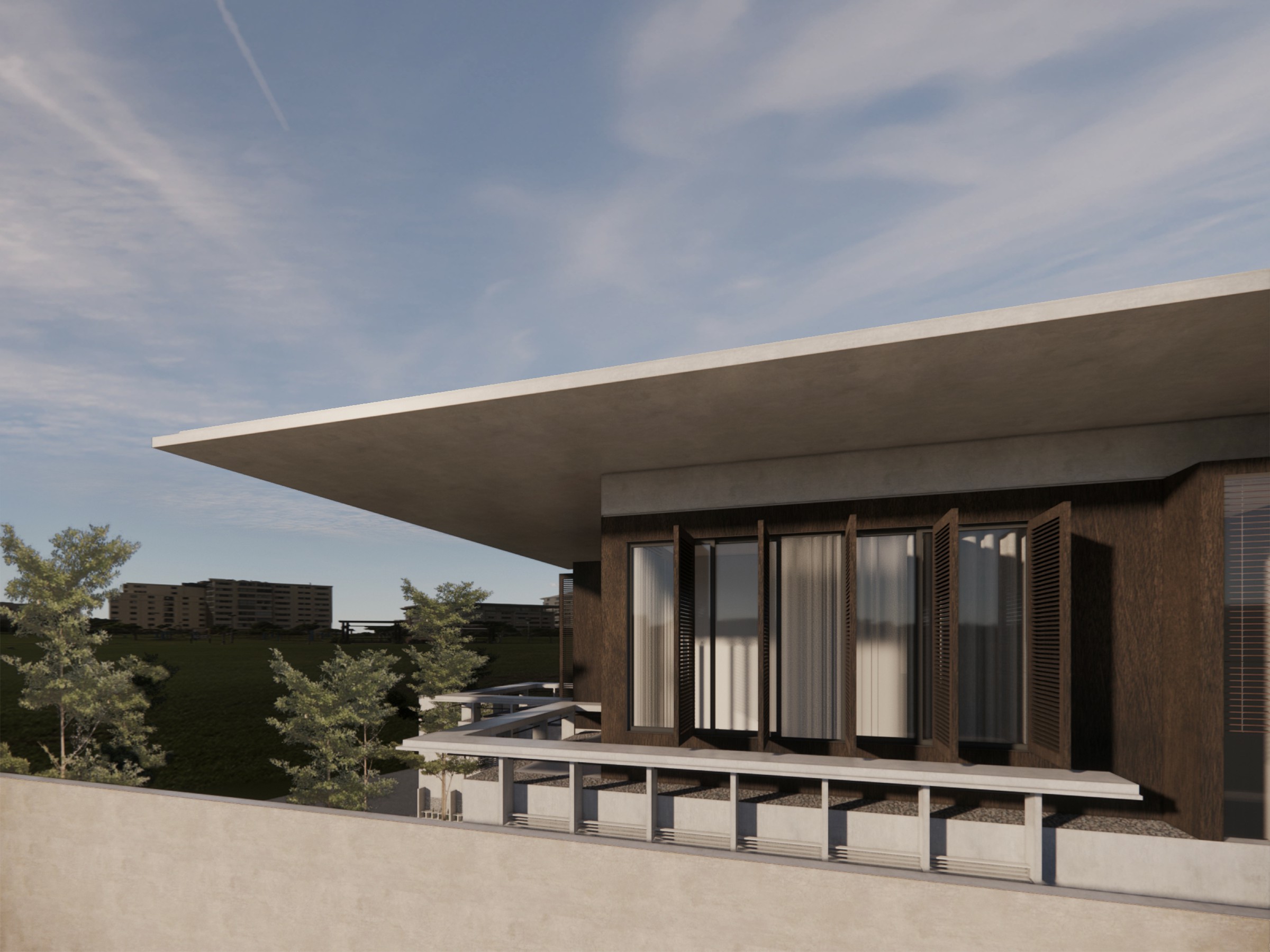Maison Tropic is a contemporary interpretation of tropical living, merging climate-responsive architecture with timeless natural aesthetics. Inspired by the word "Maison"-a nod to Le Corbusier’s familial home-this design embraces passive strategies, where natural light and airflow become the foundation of comfort and sustainability. Situated in a lush tropical environment, the home maximizes ecological integration, reducing reliance on artificial cooling while fostering a naturally ventilated, breathable atmosphere. Large openings, cross-ventilation strategies, and shaded areas ensure a seamless interaction between indoor and outdoor spaces, reinforcing the essence of tropical simplicity. Consisting of two floors, the residence thoughtfully separates communal and private spaces. The ground level features an open-plan common area, blending the kitchen, guest bedroom, and social zones into a dynamic, welcoming space. Above, the private living area and bedrooms ensure tranquility and personal retreat. Extending the tropical experience, balconies become signature elements, offering shaded outdoor lounges that enhance airflow and visual connectivity with nature. The architectural expression is rooted in organic materials, creating an intimate dialogue with nature. Stone and wood define the structural and decorative elements, establishing warmth and resilience against the tropical climate. Thoughtfully curated vegetation blends into the built form, allowing greenery to soften the rigid geometry while improving microclimate balance. Every detail echoes sustainability-balancing durability, authenticity, and visual harmony-to craft a home that is both functional and deeply connected to its environment. More than just a structure, Maison Tropic encapsulates the spirit of tropical modernism, celebrating an architectural language that is as adaptable as it is poetic.